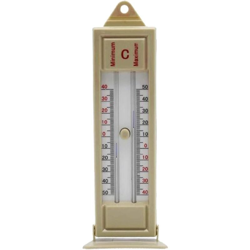 Materiale: plastica + acrilico Intervallo di temperatura: -40 ~ +50 - / - 40 ~ +120 ° C. Display con 2 unità, Celsius e Fahrenheit < /p> Il termometro minimo massimo viene utilizzato per rilevare la temperatura più alta e la temperatura minima dell'aria in un dato momento. La temperatura attorno al tubo in un ago blu indica uno stoma di lana, blu quando la temperatura cambia e quando la temperatura scende, il puntatore blu non cambia a causa del calo della temperatura e dei cambiamenti che indicano la temperatura massima o minima