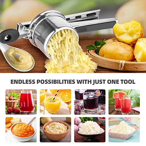 Ricer, patate Ricer, patate Ricer, in acciaio inox per uso alimentare, per spremere frutta e verdura con 3 dischi intercambiabili