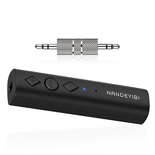 Ricevitore Bluetooth 4.1 Aux, Adattatore Audio NANDYEIBI,Stereo Da 3,5 mm, Vivavoce, Adatto Per Cuffie, Home audio, Audio Per Auto (Con clip, Microfono incorporato e connettore audio)Nero
