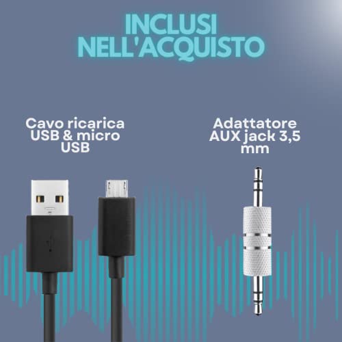 Ricarica USB e adattatori inclusi - La carica del ricevitore stereo e auto dura fino a 12 ore e raggiunge ricarica completa in sole 2.5 ore, utilizzando il cavo di ricarica. Nella confezione sono inclusi: ricevitore Bluetooth hifi, cavo di ricarica USB e cavo micro USB, adattatore aux jack. (Dimensioni dispositivo: 5,8 x 1,5 cm).