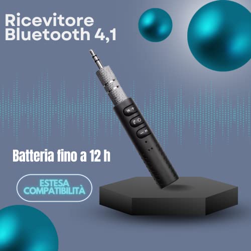 Ricevitore Bluetooth Auto 4.1 Ricevitore Vivavoce Dispositivi non-Bluetooth e Altoparlante Bluetooth Stereo, Cuffie e Auto con Adattatore Ricarica USB | Carica a Lunga Durata