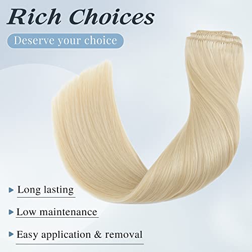 Rich Choices 50cm Extension Capelli Veri Clip 8 Fasce Double Weft #60 Biondo Platino Remy Hair Extension Capelli Umani, Pesa 150g