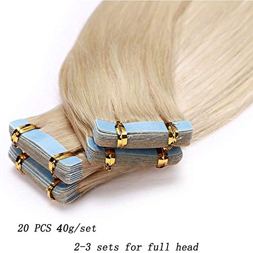 Rich Choices Extension Biadesive Capelli Veri 40cm #70 Bianco Sbiancante Tape in Hair Extension Capelli Lisci Adesivi 20 Pieces 50g/pack