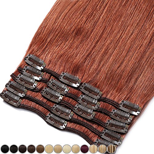 Rich Choices Extension Clip Capelli Veri 8 Fasce #33 Rosso Vibrante Full Head 100% Remy Human Hair Extensions, Lunga 25cm Pesa 75g