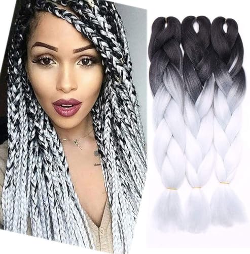 Rich Choices Treccine Africane Extension per Treccine Africane Trecce Finte per Capelli 24 Pollice Sintetici Kanekalon 3 Bundles-Nero scuro a bianco