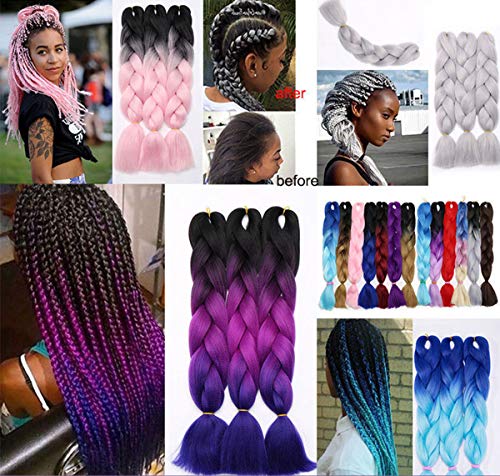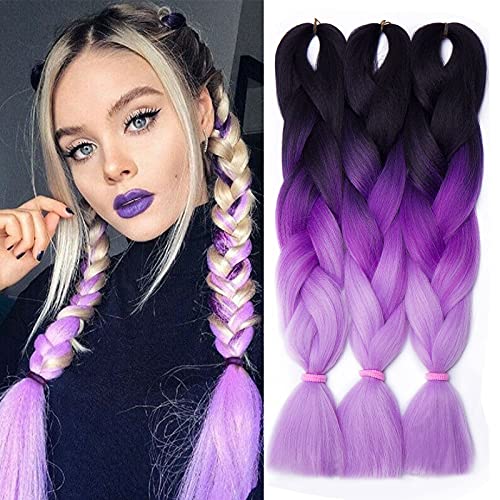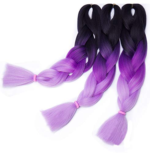 Rich Choices Treccine Africane Extension per Treccine Africane Trecce Finte per Capelli 24 Pollice Sintetici Kanekalon 3 Bundles-Da nero a viola scuro a viola chiaro