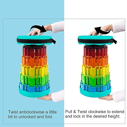 Altezza Regolabile: La gamma di regolazione dello sgabello telescopico è di 9 cm - 43.5 cm, adatto per adulti e bambini. Perfetto per campeggio, trekking, pesca, viaggi e molto altro ancora.