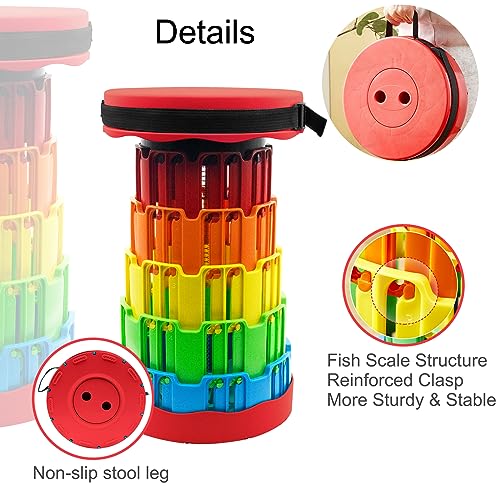 RICHDMI Sgabello Telescopico Portatile, Sgabello Pieghevole Portatile, Sgabello Pieghevole, Leggero, Regolabile in Altezza, Carico 397 LB, per Attività All'aperto, Pesca, Barbecue (Rosso)