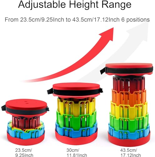Altezza Regolabile: La gamma di regolazione dello sgabello telescopico è di 9 cm - 43.5 cm, adatto per adulti e bambini. Perfetto per campeggio, trekking, pesca, viaggi e molto altro ancora.