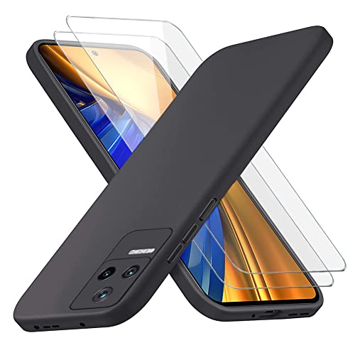 Richgle Compatibile con Cover Xiaomi Poco F4 5G & [2 Pezzi] Pellicola Vetro Temperato, Sottile Silicone Morbido TPU Custodia Cover Case Compatibile con Poco F4 - Nero RG81677