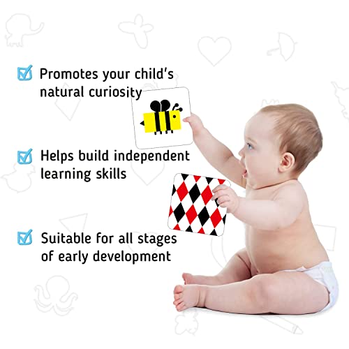 Attiva lo sviluppo visivo e cerebrale - Nei primi mesi di vita, la vista di un bambino si sviluppa più rapidamente. Le immagini ad alto contrasto, in particolare in bianco e nero, sono ideali per la stimolazione visiva che manterrà l'interesse del tuo bambino più a lungo rispetto ad altri colori. Puoi introdurre le flashcard nella loro routine quotidiana per sviluppare la memoria del cervello destro.