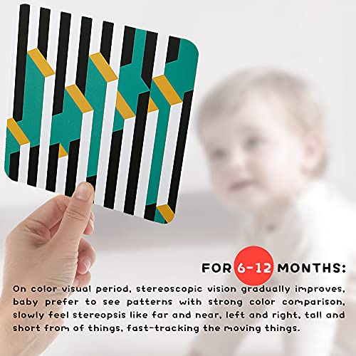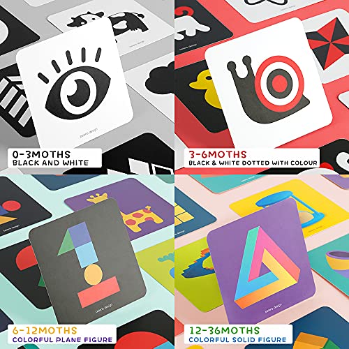 4 set per diverse fasi - le carta di stimolazione visiva sono progettate da esperti di educazione.Adatto per 0-3 anni bambino. A partire da 0-6 mesi, usa le carte in bianco e nero di base, introducendo gradualmente colori e motivi luminosi, esercita la capacità di tracciamento degli occhi del bambino. Quando ha più di 6 mesi, aiuta il bambino a stabilire la consapevolezza spaziale 3D e può anche essere utilizzato per espandere il vocabolario del bambino come gli animali della frutta digitale