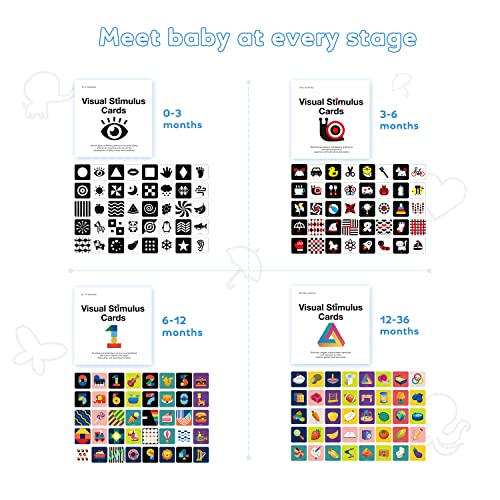 4 set per diverse fasi - le carta di stimolazione visiva sono progettate da esperti di educazione.Adatto per 0-3 anni bambino. A partire da 0-6 mesi, usa le carte in bianco e nero di base, introducendo gradualmente colori e motivi luminosi, esercita la capacità di tracciamento degli occhi del bambino. Quando ha più di 6 mesi, aiuta il bambino a stabilire la consapevolezza spaziale 3D e può anche essere utilizzato per espandere il vocabolario del bambino come gli animali della frutta digitale