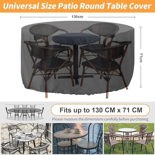Copertura rotonda per mobili da patio: dimensioni della copertura: 120 cm di diametro x 70 cm di altezza. Nota: La copertura dipende dalle dimensioni del set di mobili da esterno, in particolare dalla profondità delle sedie. Si prega di misurare attentamente le dimensioni del set di mobili prima dell'acquisto