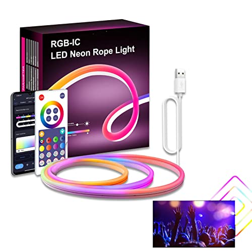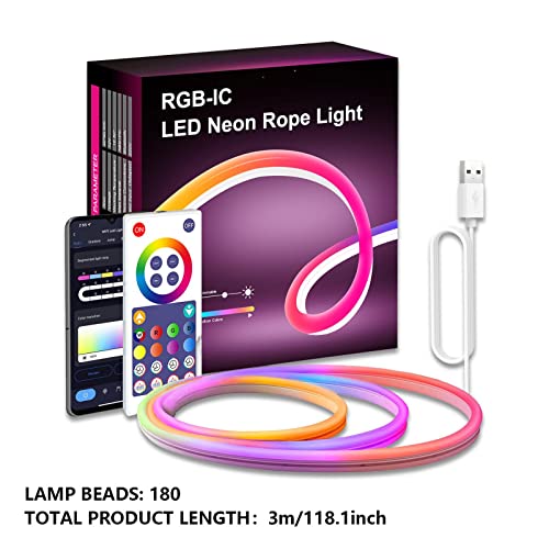 Richolyn Luci al Neon RGB | Luci Intelligenti per Interni - Luce di Striscia al Neon da 10 Piedi, Decorazione per Sala da Gioco, Impermeabile IP68, 180 Perline per Lampada a LED con Controller