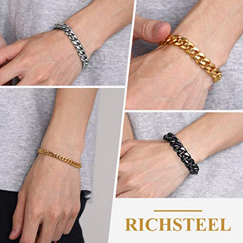 Richsteel Bracciale da Uomo in Acciaio Inossidabile Bracciale a Maglia Figaro/Cubano/Corda 19/21 cm Placcato Oro/Nero/Acciaio Gioielli Punk Hip Hop Punk per Uomo Ragazzo (Confezione Regalo)
