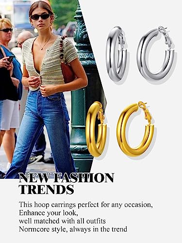 Richsteel Orecchini a Cerchio da Donna Orecchini a Cerchio in Argento Placcato Oro Orecchini a Cerchio Grande Corda Ritorta Varie Dimensioni con Confezione Regalo per Donne Ragazze
