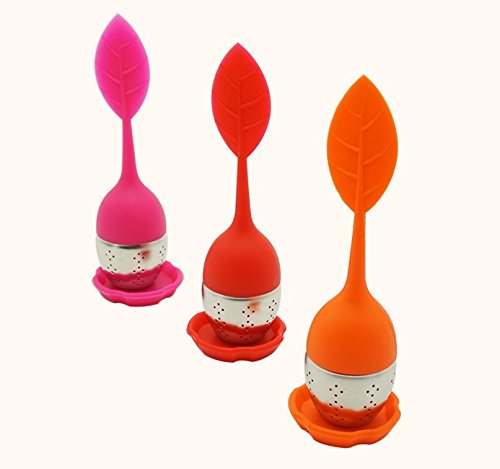 Ricisung Infusore di tè con manico/coperchio a forma di foglia in silicone e colino sferico in acciaio, 1pcs-Orange