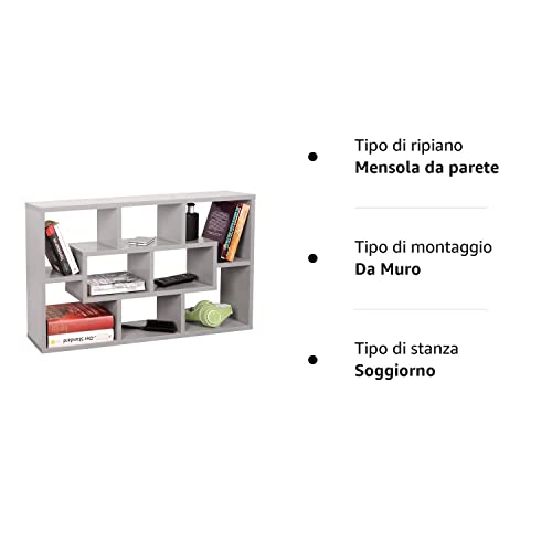 : Questo modello è una libreria sospesa piccola da appendere al muro. 8 scomparti offrono molto spazio per conservare le decorazioni e altro. Carica fino a 7 kg.