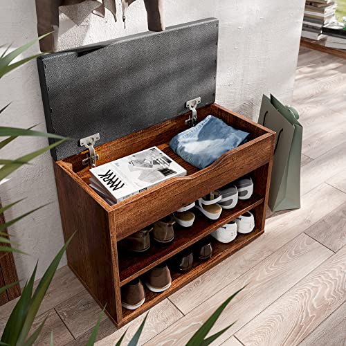 RICOO Scarpiera salvaspazio 60 x 42 x 30 cm WM032-EC-A Panca ingresso Rovere marrone rustico - Portascarpe