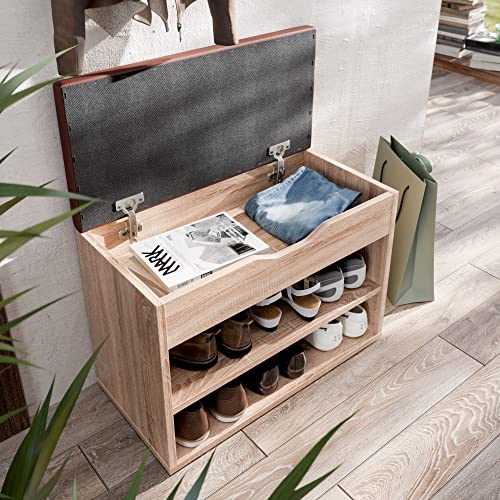 RICOO Scarpiera salvaspazio 60 x 42 x 30 cm WM032-ES-B Panca ingresso Rovere marrone Sonoma - Portascarpe