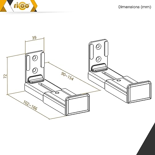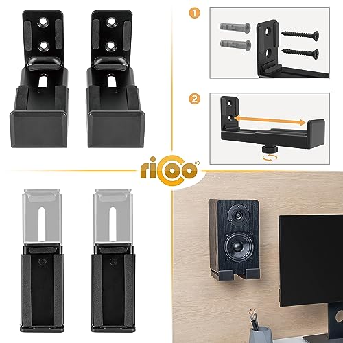 RICOO Supporti per Soundbar Universali Regolabili a Parete, LH067 Soundbar support universal, Supporti per casse audio, Soundbar bracket, Supporto altoparlanti da parete, 2 Pezzi, Nero