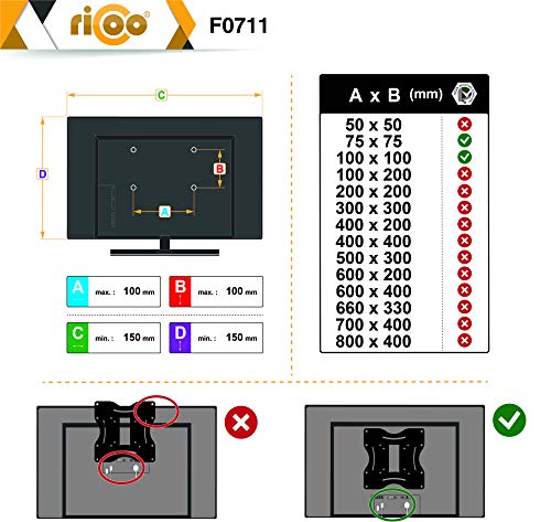 : Wall-mount adatto a tutti i produttori e marche, così come agli schermi curvo - se la posizione e la dimensione dello standard VESA così come il peso della monitor TV sono supportati!