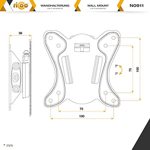 RICOO Supporto monitor muro N0911 Inclinabile Fisso Slim Schermo PC 13-27" (33-69 cm) Staffa universale Televisore LED/LCD VESA 75 x 75 100 x 100