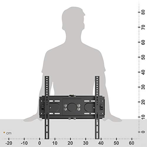 : Porta TV snodabile per televisioni è orientabile 120 gradi, se la larghezza dello schermo è 64cm max. Inclinazione regolabile da +/-15 gradi. Sostegno con distanza dalla parete da 107-459mm. Il pannello frontal è rotante di +/-6 gradi