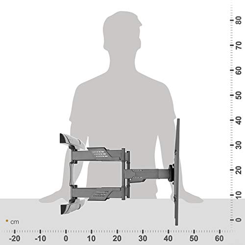 : Porta TV snodabile per televisioni è orientabile 120 gradi, dipendente della larghezza dello schermo. Inclinazione regolabile da +15/-7 gradi. Sostegno con distanza dalla parete da 41-475mm. Il pannello frontal è rotante di +/-3 gradi