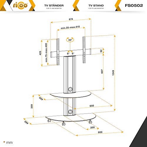 RICOO Supporto TV da Pavimento FS0502 Televisore 30-65" (76-165 cm) Staffa Girevole Piedistallo Televisione LED/LCD/Curvo VESA 300 x 200-600 x 400