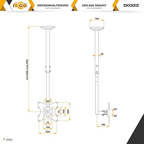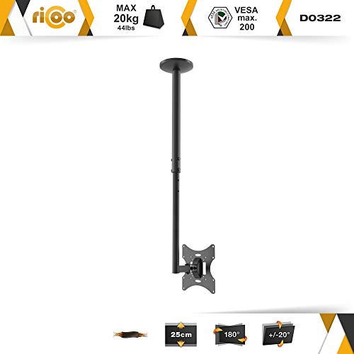 RICOO Supporto TV soffitto D0322 Girevole Inclinabile Televisore 23-42" (58-107 cm) Staffa universale Televisione LED/LCD VESA 75 x 75-200 x 200