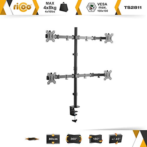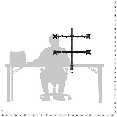 : Stand monitor quadruplo da tavolo è orientabile 180 gradi. Sostegno con inclinazione flessibile da +/-45 gradi. Rotazione de pannello frontale a 360 gradi. Altezza della base è regolabile
