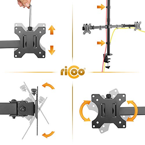 RICOO TS2811 Supporto monitor scrivania Girevole Inclinabile Schermi 13-27" (33-69cm) Braccio schermo PC Staffa universale VESA 75x75 100x100