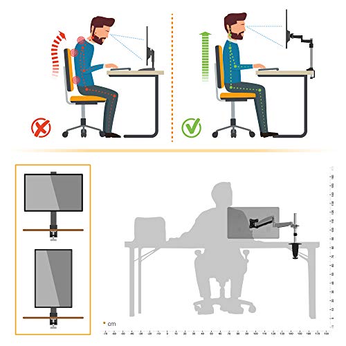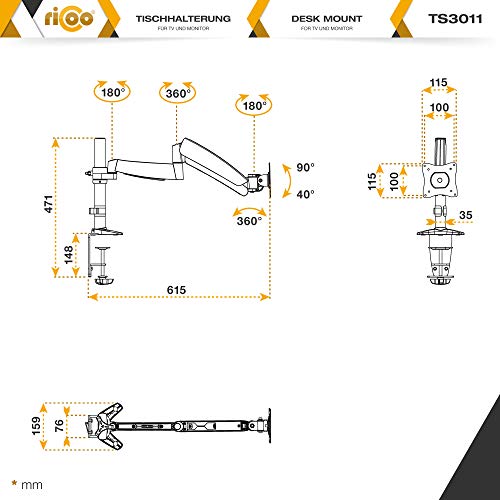 : Porta schermo è resistente da 2,5kg - 9kg. Molla a gas richiede un peso minimo! Adatto per VESA standard 75x75 100x100. Fissaggio con morsetto.
