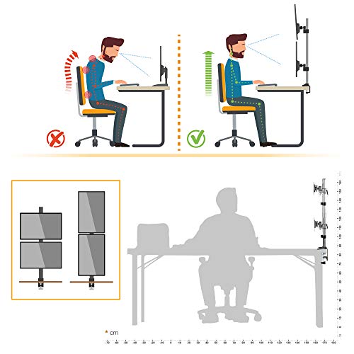 : Stand monitor doppio da tavolo è orientabile 180 gradi. Sulla barra anche girabile a 360 gradi. Sostegno con inclinazione flessibile da +/-15 gradi. Rotazione a 360 gradi del pannello frontale. Altezza della base è regolabile
