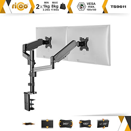 RICOO TS9611 Supporto monitor scrivania Girevole Inclinabile Schermi 17-32" (43-81cm) Braccio schermo PC Staffa universale VESA 75x75 100x100