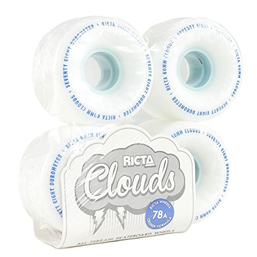 Ricta Clouds, ruote da skateboard, colore: bianco e blu, durezza 78a, diametro 60 mm. Le ruote Ricta Clouds sono progettate tenendo in mente tutti i tipi di terreno possibile, rendendo innocuo qualunque tipo di terreno ruvido e aggressivo. Perfetto per cruisers e riprese set up.