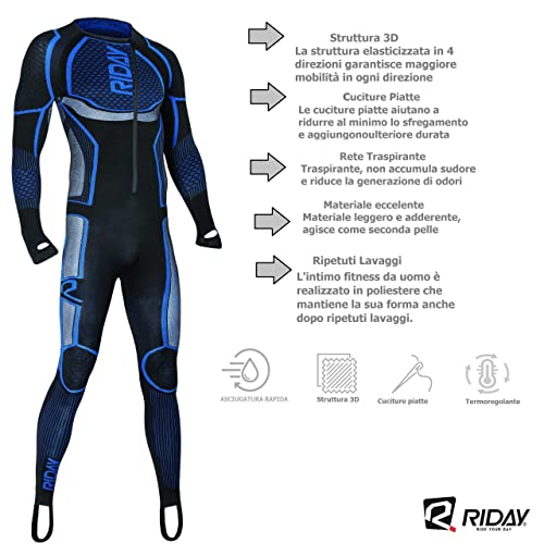 RIDAY Sottotuta Integrale TERMOREGOLANTE Sottotuta Moto Termico Professionale Sottotuta Moto Tecnica Traspirante e Resistente (Nero Grigio, I 44/46 S/M IT Uomo)