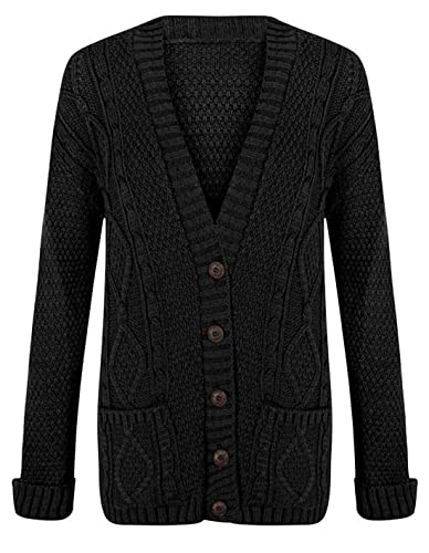RIDDLED WITH STYLE - Cardigan da donna, a manica lunga, maglione Aran spesso, a trecce, con bottoni
