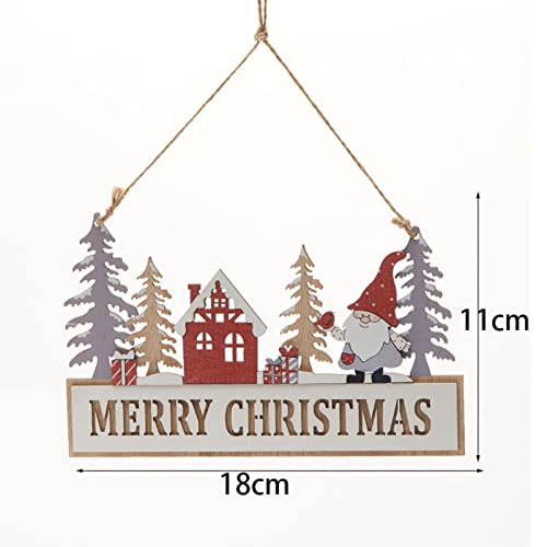 Ridecle Decorazione natalizia in legno da parete, decorazione per porta, buon Natale, Babbo Natale, elfo gnome, ciondolo per porta di casa, per interni ed esterni