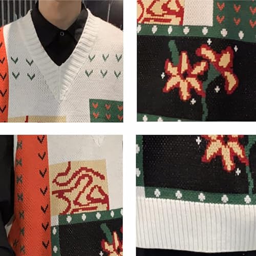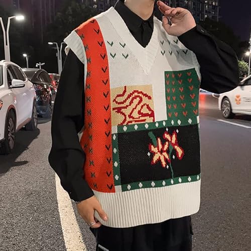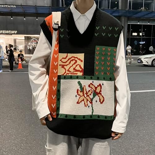 Giubbotto per maglione a maglia a maglia manica maschile a maniche per maglione a cavo sciolto top-giubbotto giubbotto in maglia maglione con manicotta vintage uniforme per maglione a maniche per maglione a manicotto canotta a v-tornia a vena Giubbotti universitari a maglia