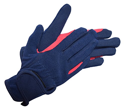 Riders Trend-Amara, per Bambini per Uso Quotidiano, Cavallo in Elastam 4Way Equestrian-Guanti da Equitazione, Taglia XL, Colore: Blu/Rosa