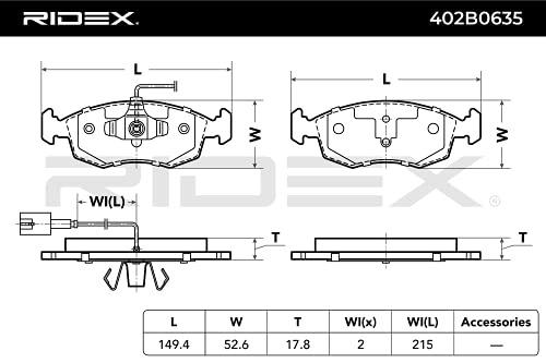 RIDEX 402B0635 Kit pastiglie, Freno a Disco, Set di 4