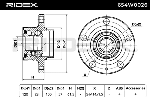 RIDEX Kit cuscinetto ruota 654W0026 assale post. bilaterale 61,5mm 28mm 120mm