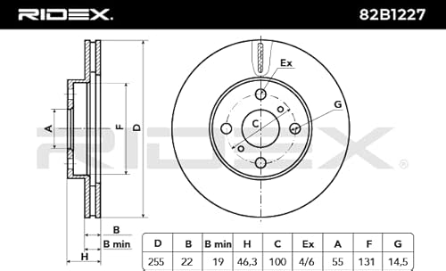 2x RIDEX Disco freno 82B1227 anteriori per CHARADE 46,3mm 131mm 255,0mm
