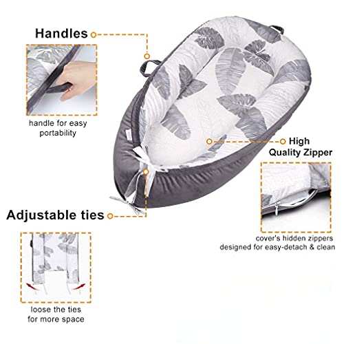Lavabile in lavatrice e staccabile: c'è una cerniera nascosta nella parte inferiore del nido per bambini, che può essere utilizzata per rimuovere il cuscino e il paraurti reclinabile nel nido per bambini per una facile pulizia.