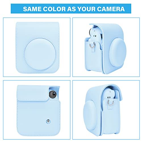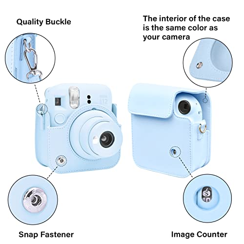 Rieibi Custodia per Instax Mini 12 - Custodia Protettiva in Pelle PU per Fotocamera Istantanea Fujifilm Instax Mini 12 - Custodia Rimovibile con Tracolla - Blu