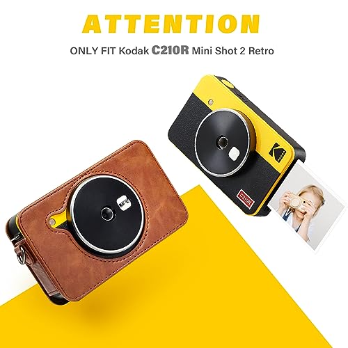 Rieibi Kodak Mini Shot 2 Retro Custodia, PU Custodia Protettiva in Pelle per Kodak C210R Mini Shot 2 Retro 2-in-1 Fotocamera/Stampante Istantanea Portatile con Tracolla