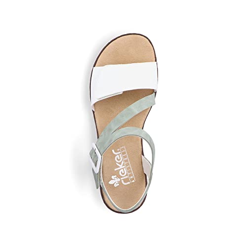 Rieker Donna Sandali V3660, Signora Sandali,Scarpa Estiva,Sandalo Estivo,Comodo,Piatto,Verde (Grün Kombi / 52),42 EU / 8 UK